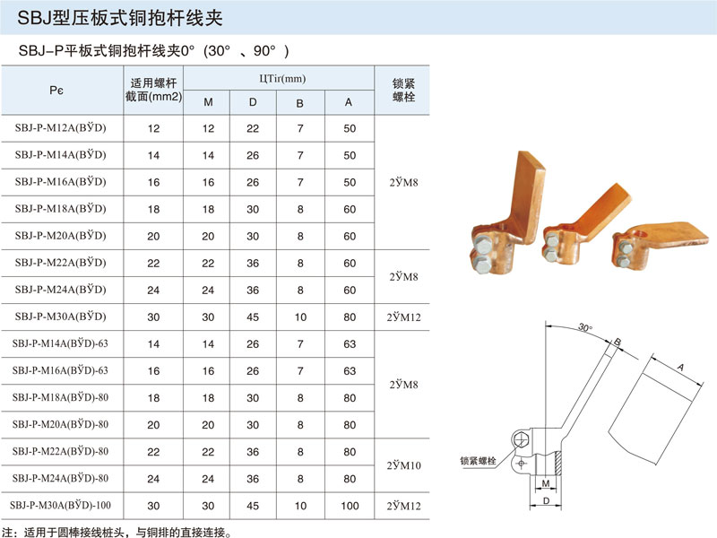SBJ-P平板式銅抱桿線夾